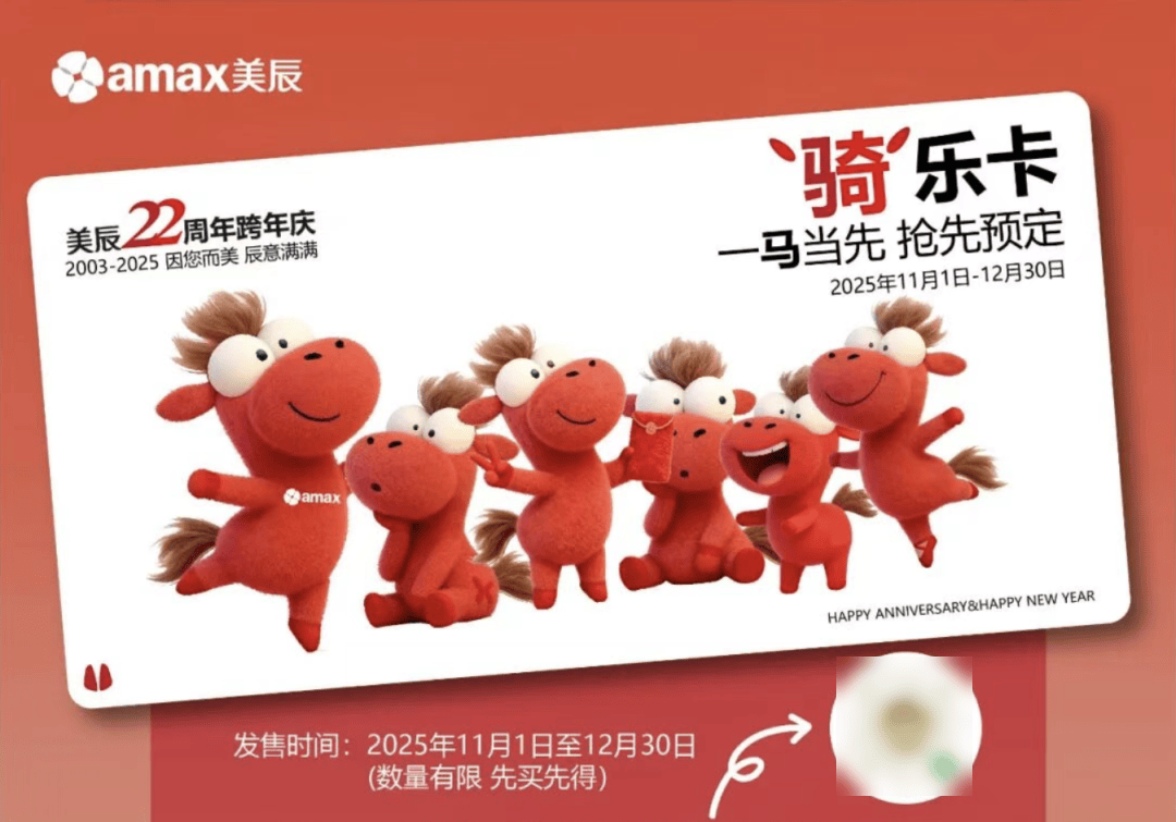 美辰百货在上周更名为美辰AMAX,在22周年到来之际,率先推出跨年“骑乐卡”,办卡可享220元跨年券,凭卡免费抽奖,新年礼盒免费领等权益。双十一抢购热潮带来111元翻222元,满110元送110元服饰+餐饮券,多家品牌推出低至5折福利等。