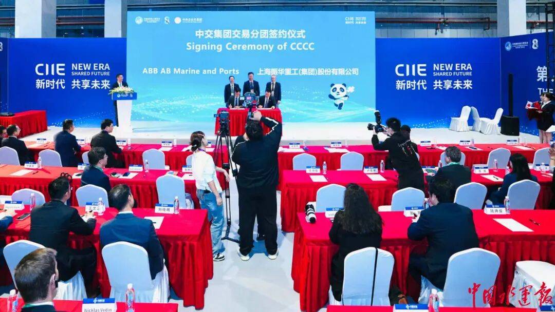 本届进博会上,中交集团以近28亿元人民币的签约金额,彰显了其深化全球合作的决心。与此同时,中交集团旗下振华重工等企业与来自德国、瑞士、日本、马来西亚、新加坡、意大利等国家的12个国际供应商签订进口采购合同或协议,进一步强化了产业链的全球布局。