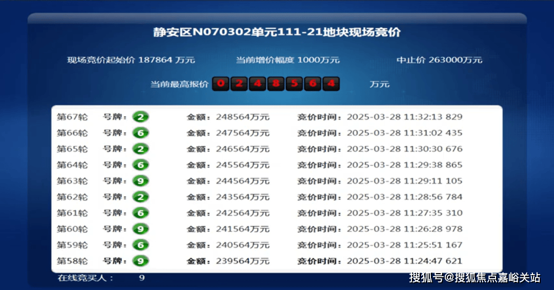 3月28日,上海2025年第三批次土拍,大华集团以总价24.85亿竞得静安大宁111-21地块,溢价率32.31%,折合楼板价92659元/㎡。装修标准不小于5000元/㎡。