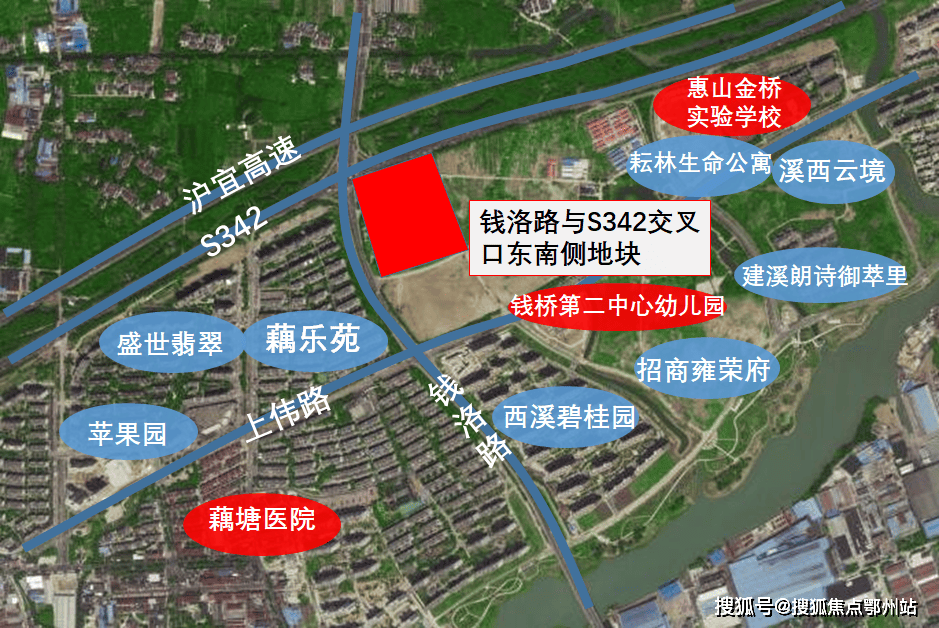 项目位于钱洛路与342省道交叉口东南侧,土地性质为居住用地,容积率2.8,成交楼面价10000元/㎡,溢价率5.26%,是惠山区钱桥板块的首幅万元地块。