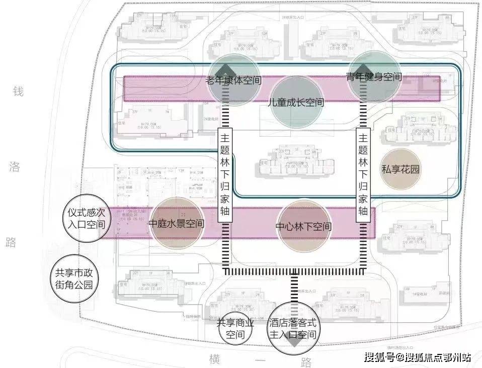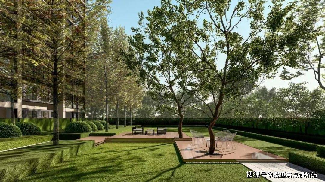 项目在景观设计上也下了一番功夫,据悉,项目约38%高绿地率,社区内部设置了一环一轴双中心,围合式的中央景观布局,围合成约600㎡的中心草坪。