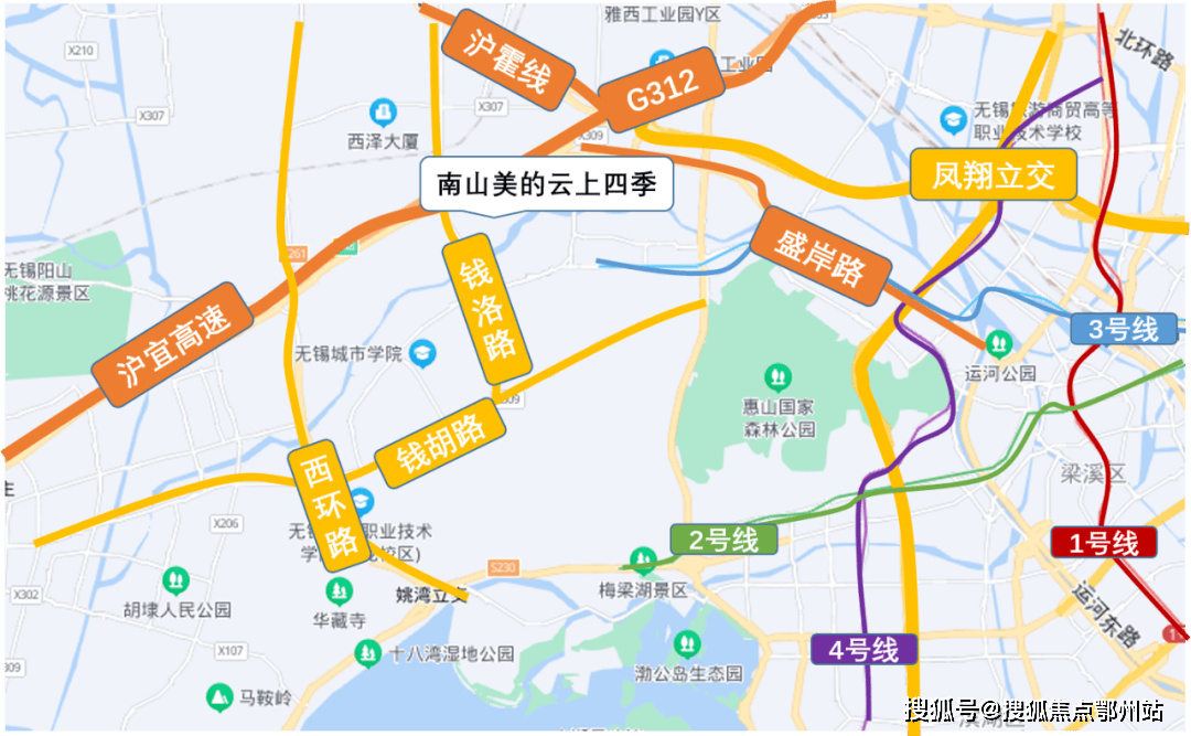 南山美的云上四季,项目择址于锡西新城,享洋溪公园城自然景观、保利文化城等规划利好,同时地铁3号线、惠山高铁站等加持,交通便捷,通达无锡全城。